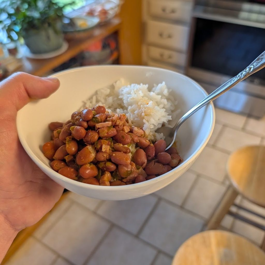 - Once done sauteing the sofrito, add all remaining ingredients EXCEPT for the beans. Bring to a boil, lower to a simmer, cover and let simmer for 1 hour (will let the flavors deepen and improve, also cooks off the…distinct taste cilantro can cause). Once the hour is up, add the beans, and simmer for 15 minutes. Serve over white rice.